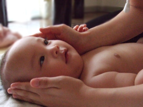 赤ちゃんは、初めは、なんだろう?というような表情をしてるようにも見えましたが、抵抗する様子もなく足のマッサージを受けていました。
