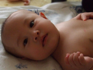 少し、抱っこでうっとりした赤ちゃん。