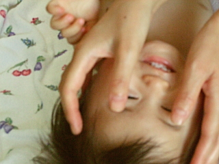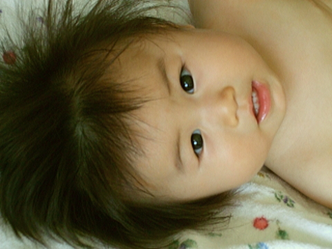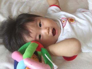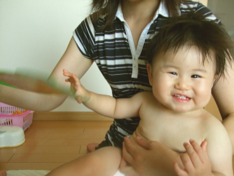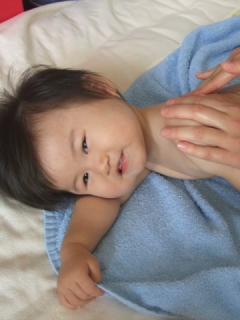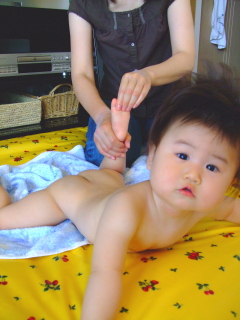 | 表情も、一段とお姉さんらしく見えました。 マッサージはお歌をうたいながら行うと、ママがうたってる最中はじっと聞いていますが、終わると、あっ、おお、など笑顔で声をだし、それからパチパチ、と拍手もしたりして、ママがうたってくれるのを喜んでいるようでした。 |