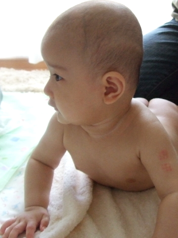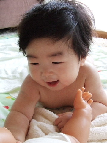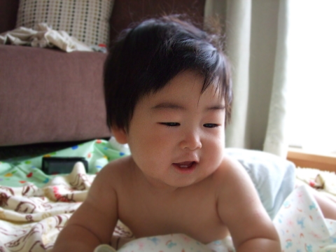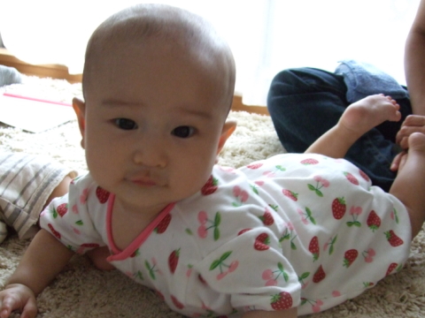 男の子は、この一週間でずり這いができるようになり、家の中どこでも移動☆