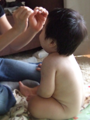 お胸のマッサージでは、ママの歌をじっと聞いて、ママのおめめも見て、とてもよかったです。