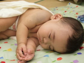 | 4回を通しての感想をお聞きすると、 ・目を合わせて触れることがよかった。 ・パパもマッサージを覚えて着替えの時に楽しそうにやっている。 ・背中のマッサージが入眠のきっかけになりつつある。 ・ぐずっているときに好きなところを触ると笑うときもある。 ・目を見て触ることで、しっかりとコミュニケーションがとれている気がする。 などお話ししてくださいました。 | ![]() |