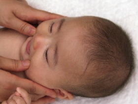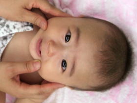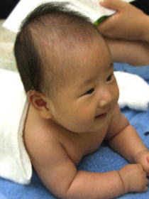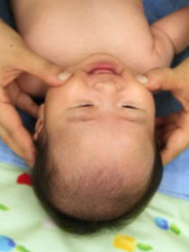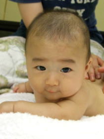 | マッサージが始まるとわかるのか、ママの手を見て嬉しそうにしている赤ちゃんもいました。 コロコロコロ〜♪は赤ちゃん達も嬉しそうでしたが、ママたちの笑顔もよかったです(^^) お顔はみんな気持ち良さそうにしていましたね。 | ![]() |